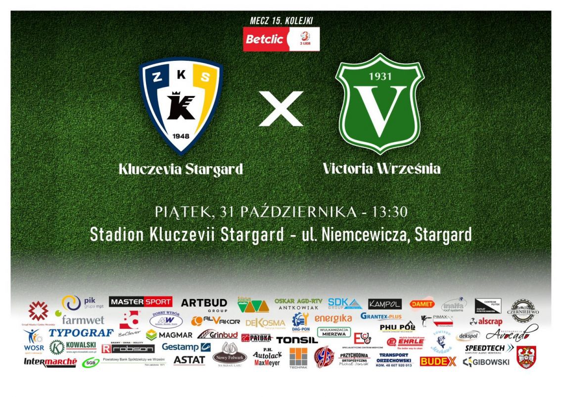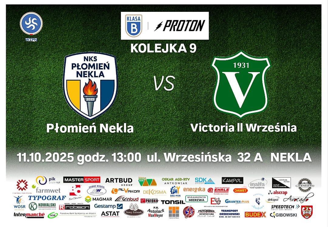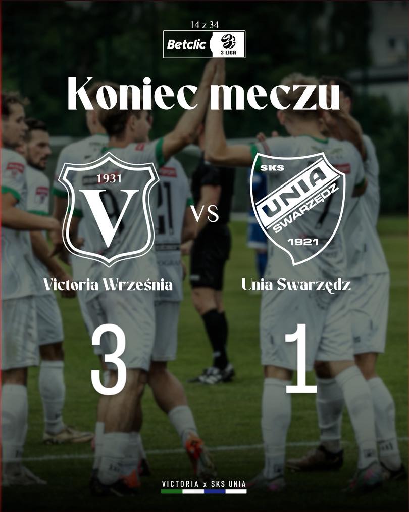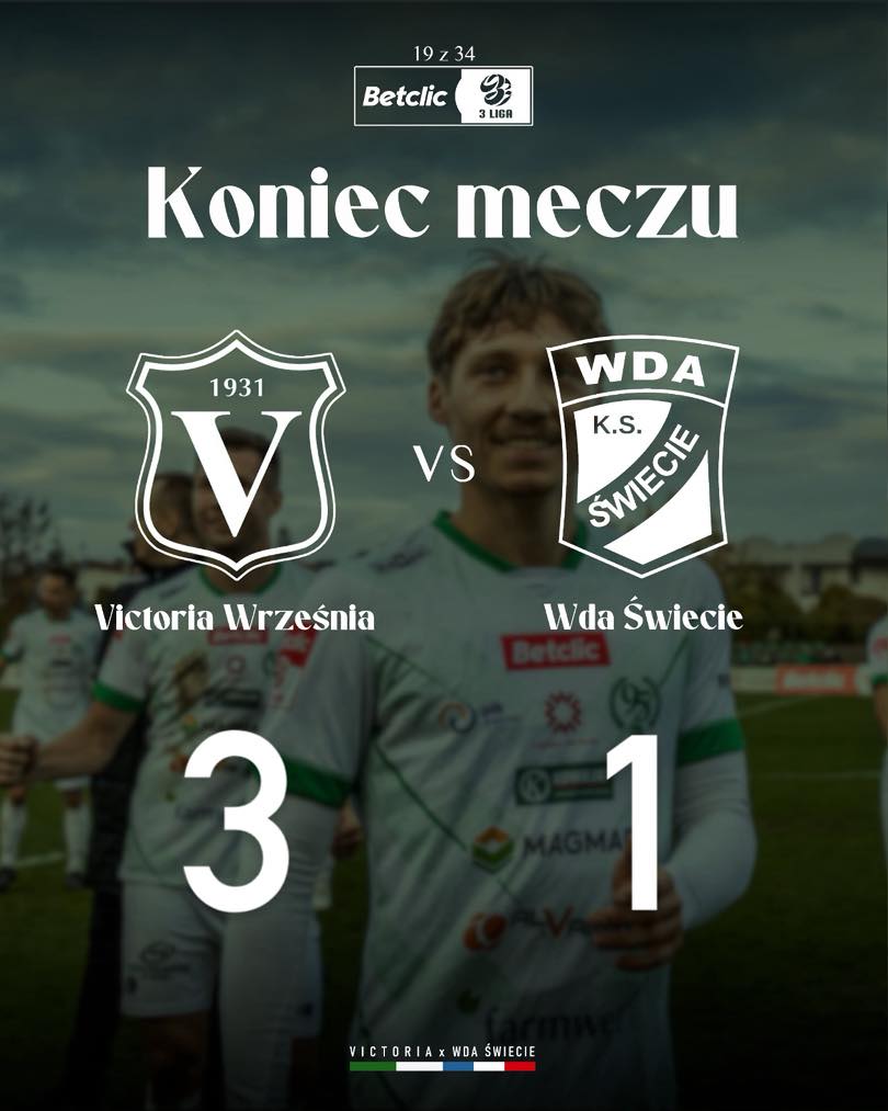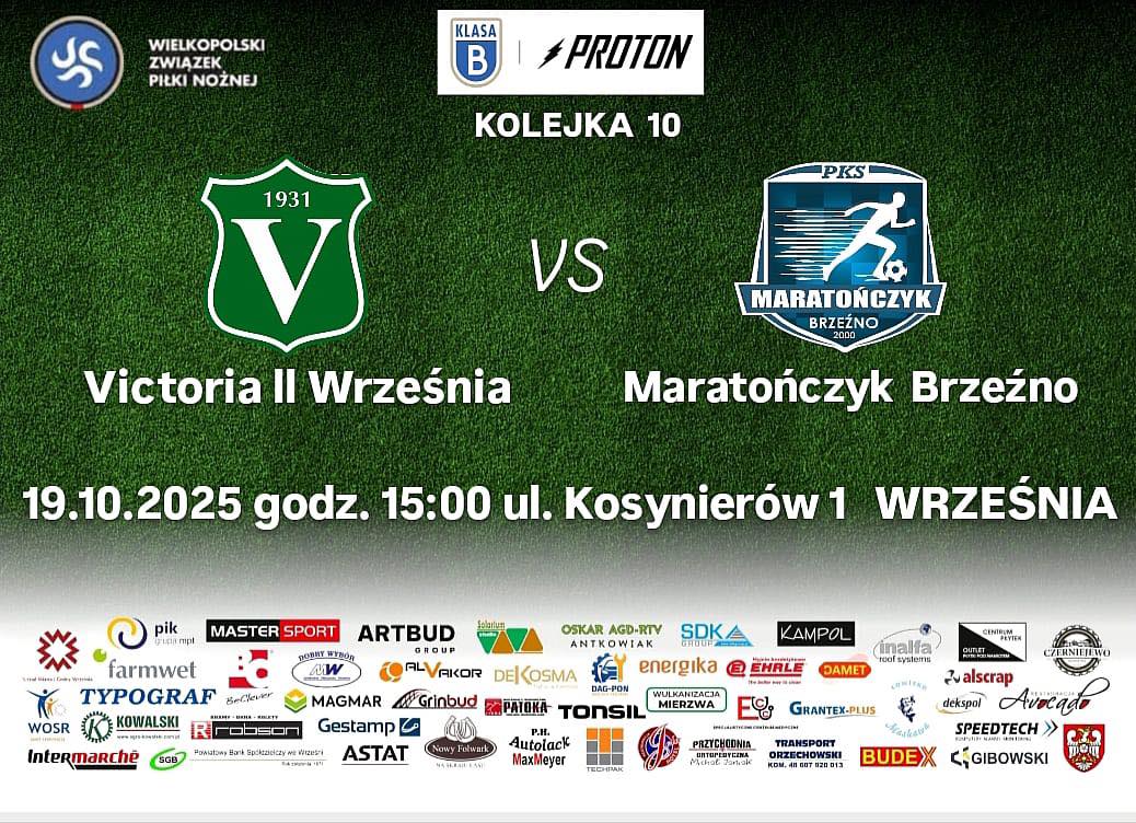 Betclic 3 liga Victoria Września - Unia Swarzędz 25.10.2025 15.00 Września Proton B klasa Sokół Damasławek - Victoria II Września 26.10.2025 14.00 Damasławek 1 Liga Okręgowa Junior B1 Victoria Września - Polonia Golina ...