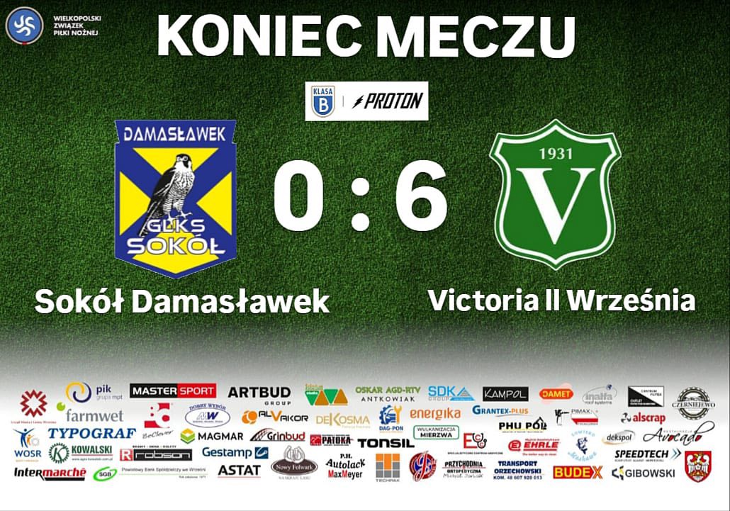 Sokół Damasławek - Victoria II Września 0:6 Wysokim i zdecydowanym zwycięstwem zakończył się ostatni mecz ligowy jesienią zespołu rezerw trenera Janusza Hofmana . Bramki dla zdobyli: Kacper Chałupniczak Aleksander Brandt Szymon Kozłowski Matvii...