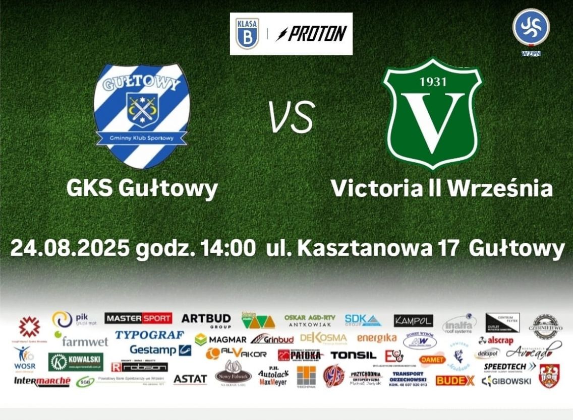 Betclic 3 liga Zawisza BydgoszczVictoria Września 20.08.2025 19.30 Bydgoszcz Betclic 3 liga Victoria Września - Flota Świnoujście 27.08.2025 18.00 Września Proton B klasa GKS GułtowyVictoria Września 24.08.2025 14.00 Gułtowy 2 Liga...