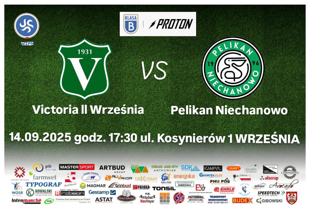 Betclic 3 liga Noteć Czarnków - Victoria Września 12.09.2025 17.00 Czarnków Proton B klasa Victoria II Września - Pelikan Niechanowo 14.09.2025 17.30 Września 1 Liga Okręgowa Junior B1 Victoria Września - ZKS Orły Zagórów...