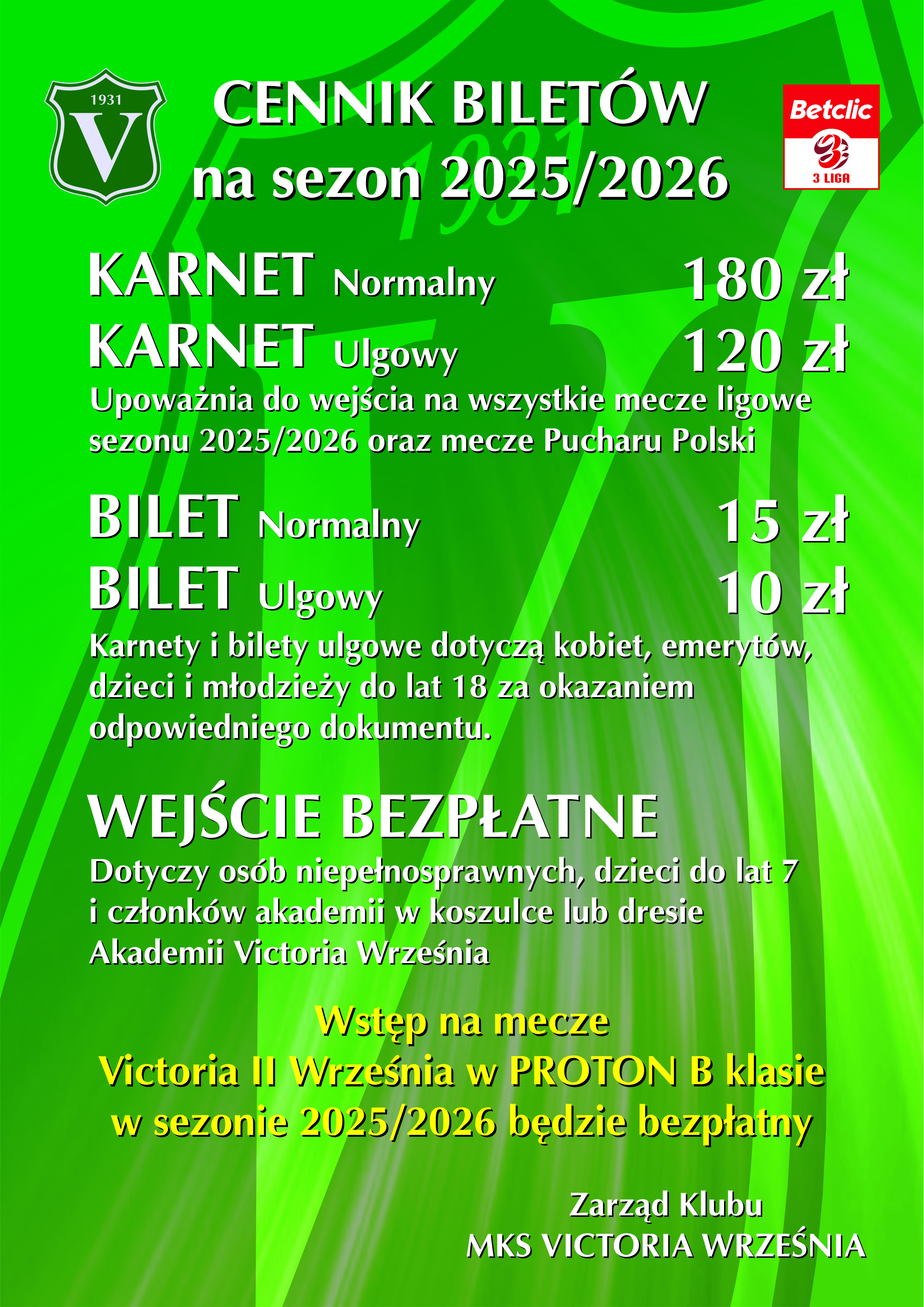 Wstęp na mecze Victoria II Września w PROTON B Klasie w sezonie 2025/26 jest bezpłatny.