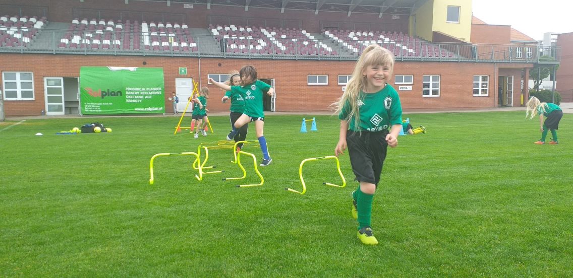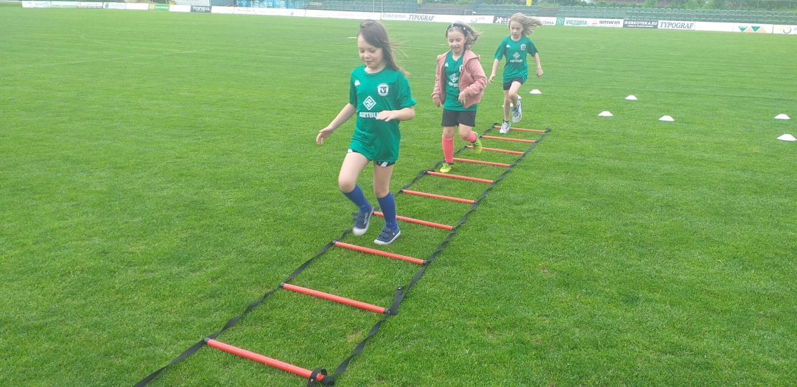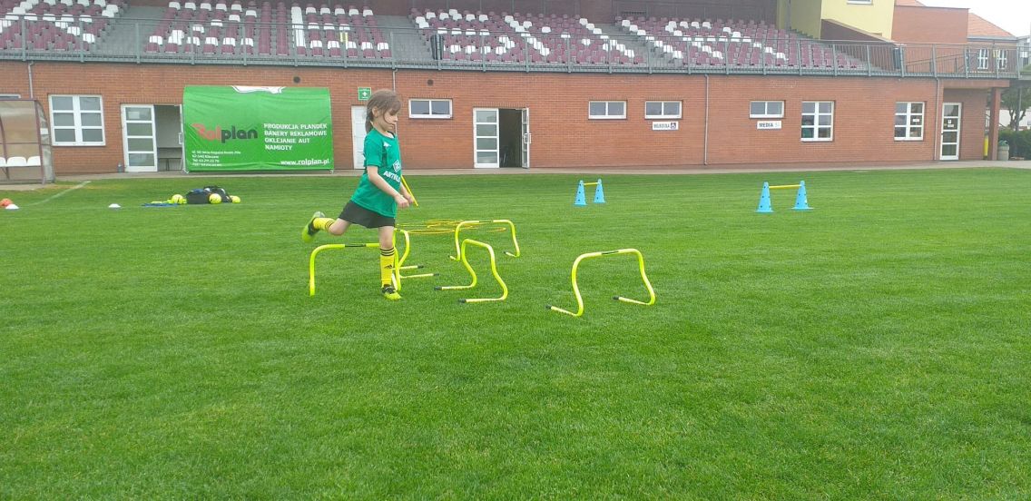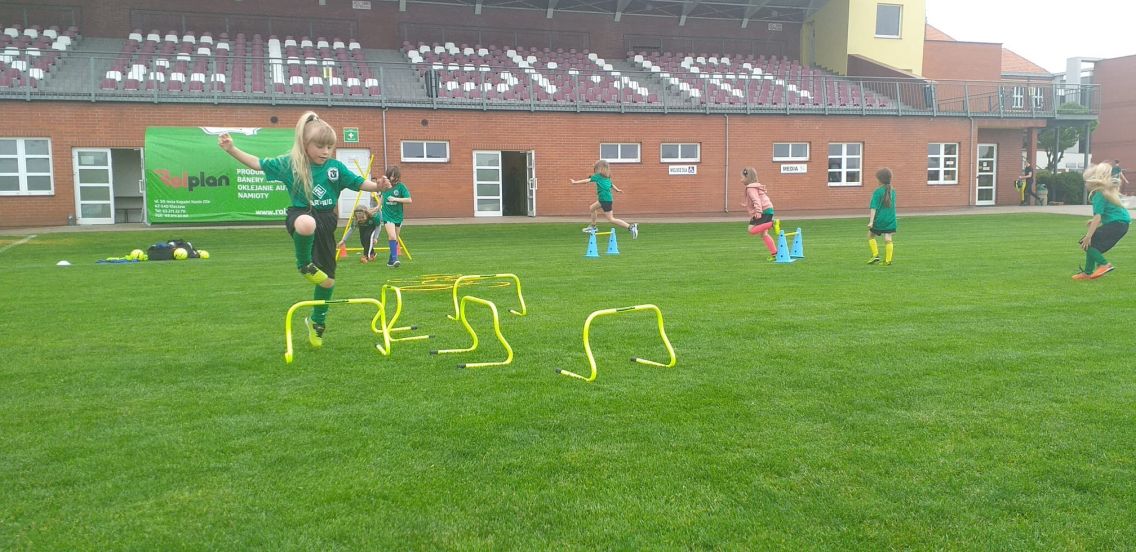 Coraz śmielej poczyniają sobie dziewczynki na boisku. Dziś podczas treningu nie tylko rywalizowały w meczu ale też świetnie radziły sobie podczas ćwiczeń na torze przeszkód .