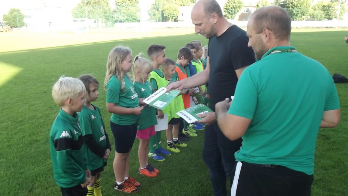 We wtorkowe popołudnie nasza najmłodsza grupa spotkała się na ostatnim treningu piłkarskim. Cała jednostka treningowa skierowana była na małe gry. Po turnieju nasze mamy zadbały o słodki poczęstunek i ciepłe napoje. Na skrzatów czekała jeszcze miła niespodzianka. Za ciężką pracę na treningach, systematyczność i zaangażowanie Prezes Mateusz Kuliński wręczył pamiątkowe dyplomy i na koniec naszym piłkarzom i piłkarką życzył udanych wakacji![]()
