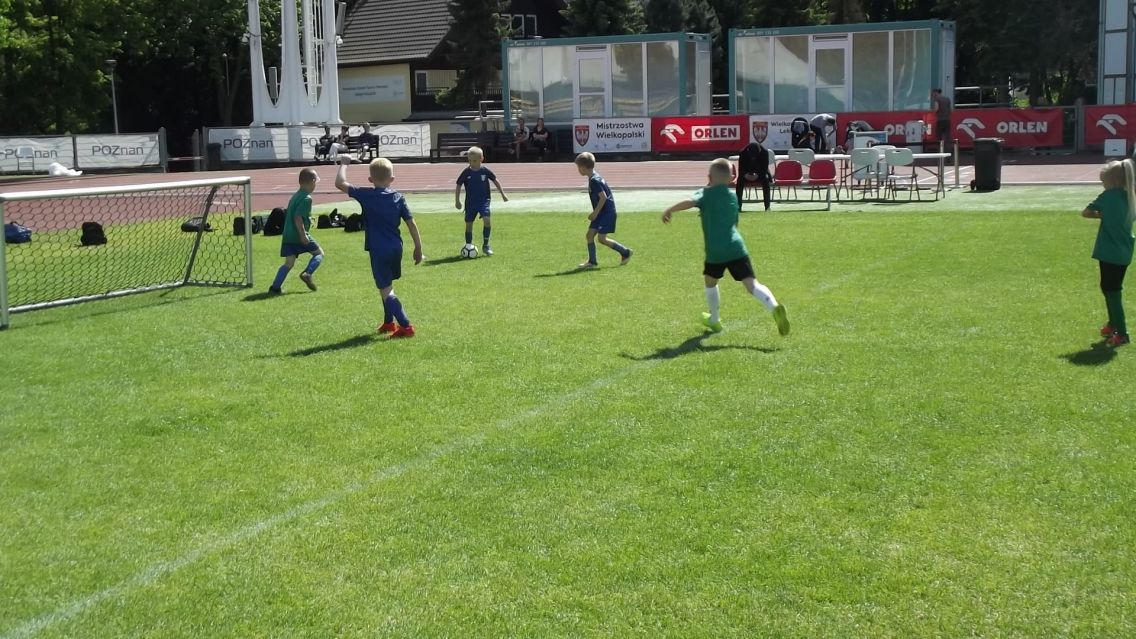 03.06.2023 w Poznaniu na stadionie Golęcin odbył się Wielkopolski Turniej Gzubów dla skrzatów organizowany przez Wielkopolski Związek Piłki Nożnej. Do rywalizacji przystąpiły zespoły z całej Wielkopolski. Nasz zespół trafił do drugiej grupy gdzie rywalizował z zespołami: Gwiazda Bydgoszcz, KP Obra 1912 Kościan, Mieszko Gniezno, Stowarzyszenie Gostyński Futsal, Champion SC Rokietnica, MKS Warta Międzychód, SMS APR Ślesin oraz Polonia Środa Wlkp. Turniej świetnie przeprowadzony, duża liczba przygotowanych boisk sprawiła ,że mało było czekania a dużo grania. Nasz zespół spędził na boisku aż 90 minut samej gry. Co najważniejsze nasi młodzi zawodnicy zawsze z uśmiechem oraz ogromną determinacją podchodzili do rywalizacji. Była to dla nas dobra lekcja futbolu. Dziękujemy naszym rodzicom za wsparcie z trybun. Nasz klub reprezentowali: Lena Wyrzykiewicz, Julia Wyrzykiewicz, Wojciech Wyrzykiewicz, Antonina Piskorż, Ignacy Kaliszewski, Hubert Koralewski, Mateusz Szalaty, Jakaub Kacprzak, Wojciech Kaczmarek.